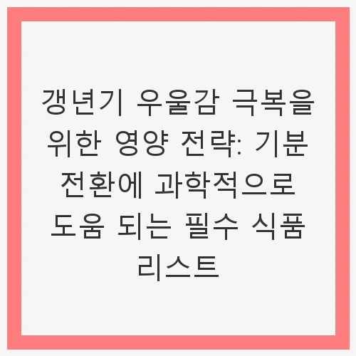 👉갱년기 우울감 극복을 위한 영양 전략: 기분 전환에 과학적으로 도움 되는 필수 식품 리스트 알아보기