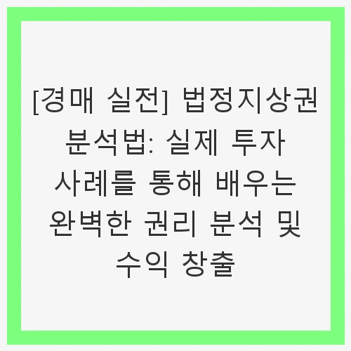 👉[경매 실전] 법정지상권 분석법: 실제 투자 사례를 통해 배우는 완벽한 권리 분석 및 수익 창출 바로가기