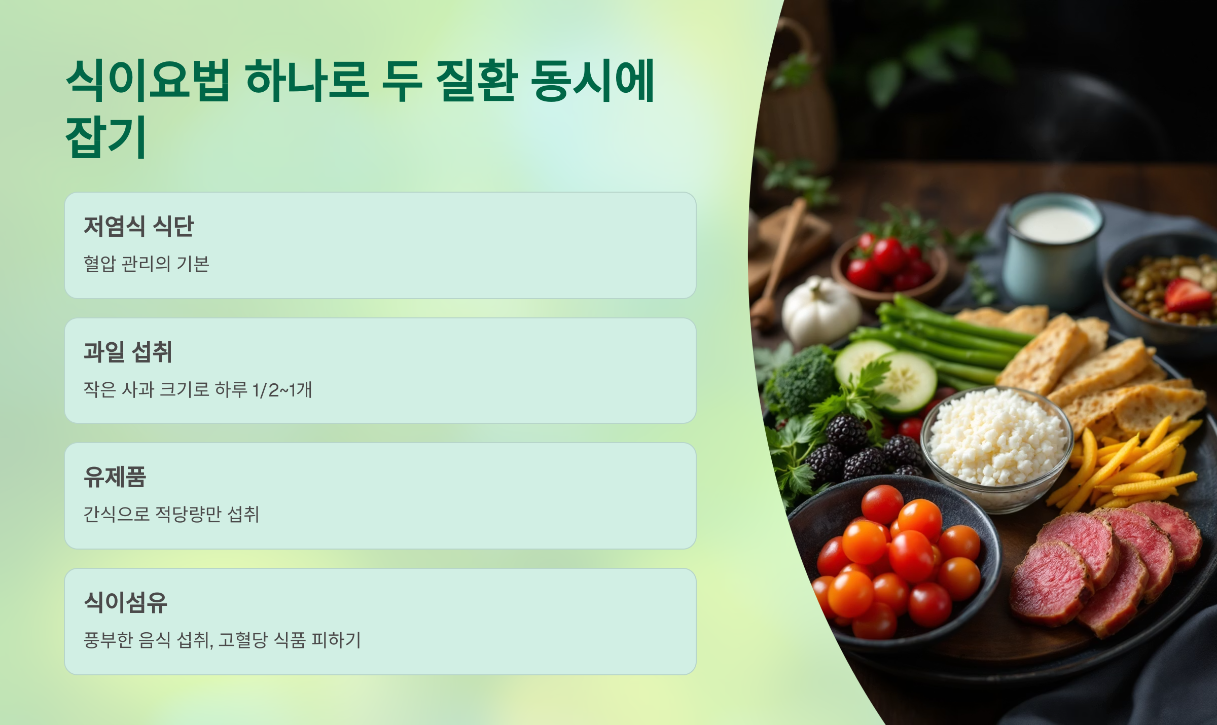 고혈압, 당뇨병, 식이요법, 혈압관리, 혈당관리, DASH식단, 운동습관, 생활습관병, 건강관리, 만성질환