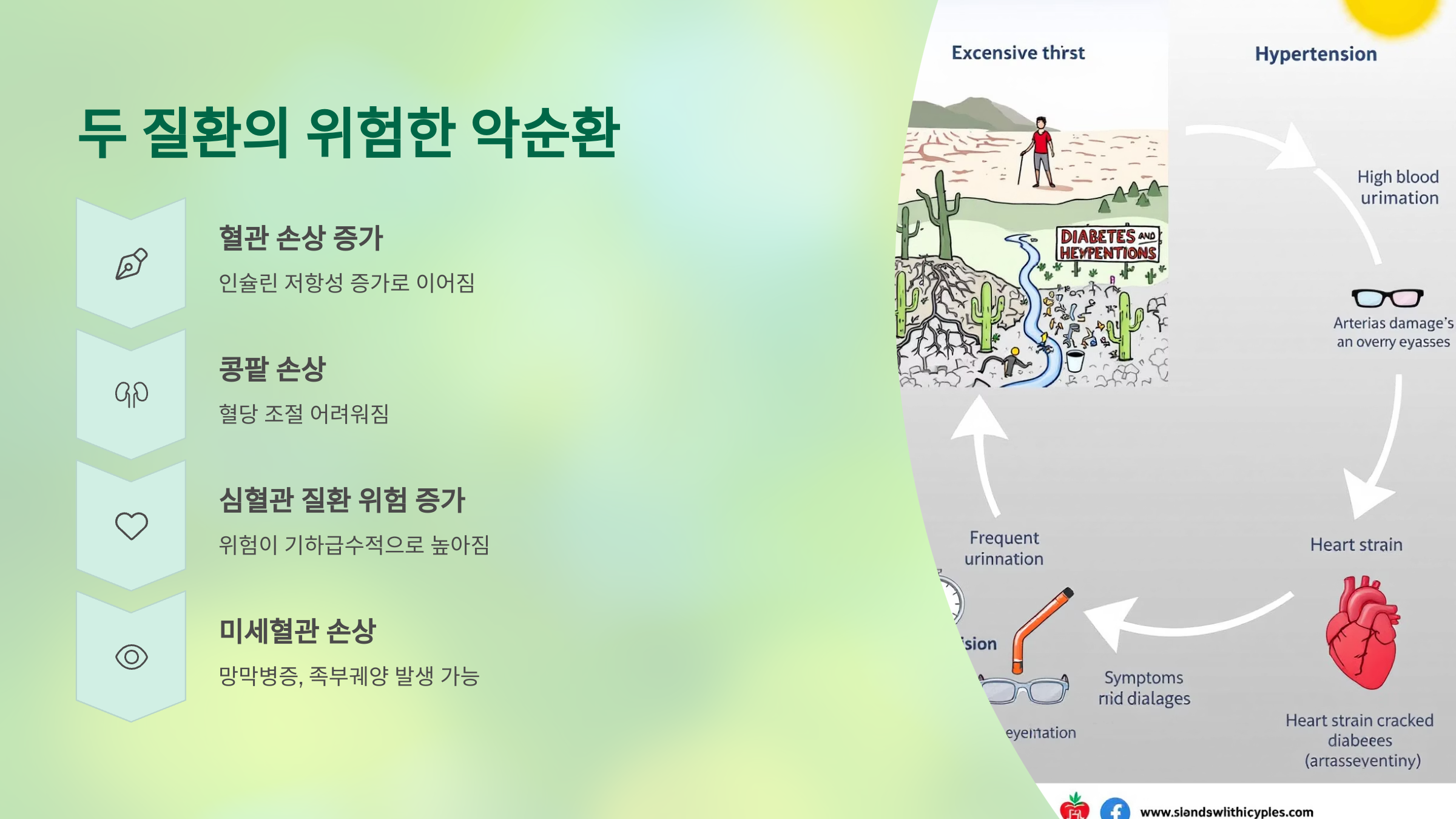 단순히 각각의 위험이 아닌, 시너지를 내며 합병증 가능성을 급격히 높입니다.