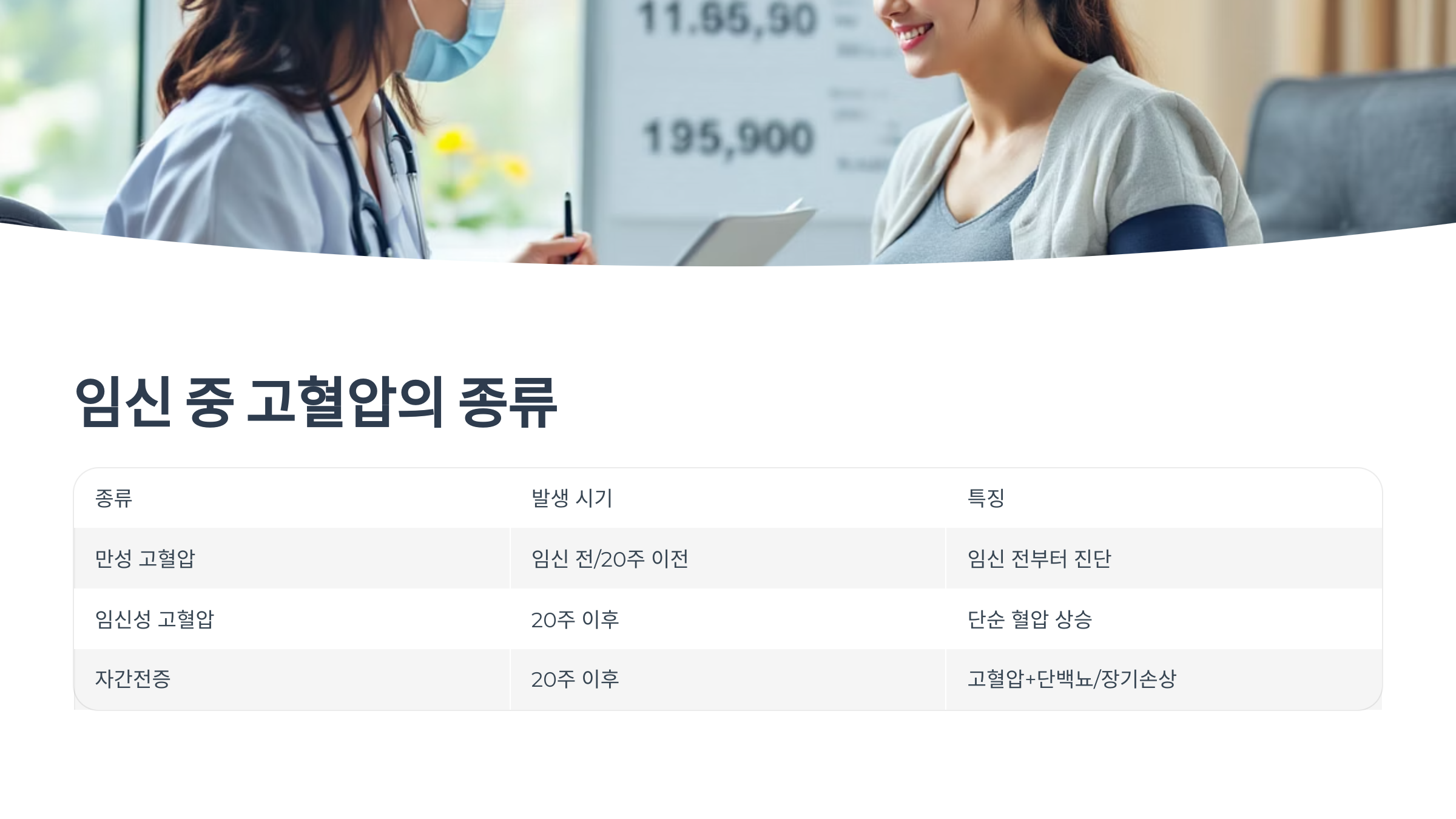 | 임신성 고혈압 | 20주 이후 | 단순 혈압 상승, 단백뇨 없음 |