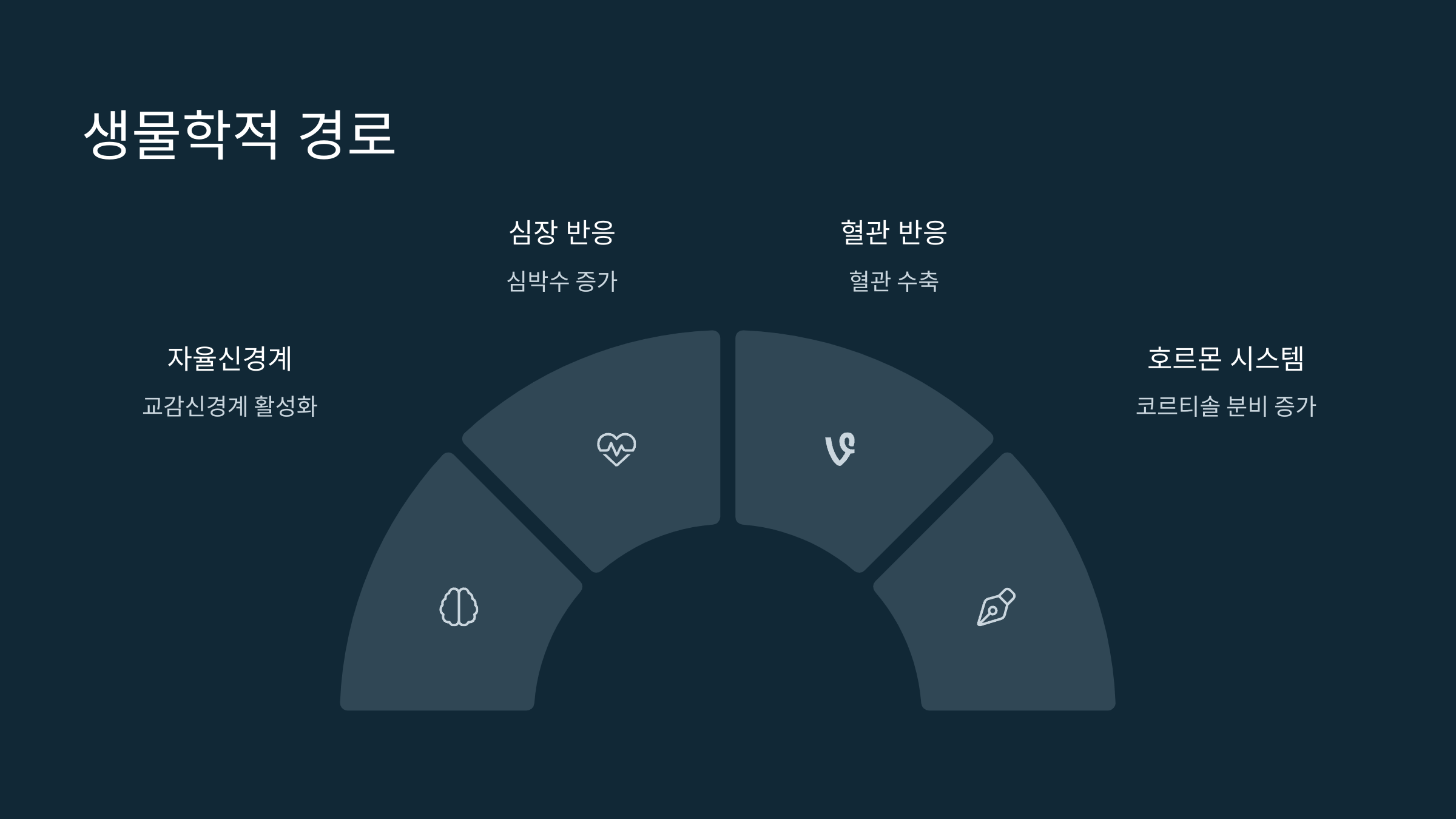 우리가 스트레스를 받으면, 신체는 ‘투쟁-도피 반응(fight-or-flight)’이라는 생존 모드로 전환됩니다. 이때 우리 몸에서는 아드레날린과 코르티솔이라는 스트레스 호르몬이 분비되고, 그 결과 심박수가 증가하고 혈관이 수축하면서 혈압이 올라갑니다.