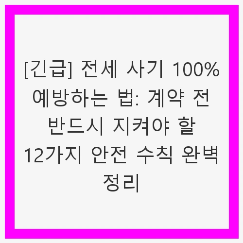 👉[긴급] 전세 사기 100% 예방하는 법: 계약 전 반드시 지켜야 할 12가지 안전 수칙 완벽 정리 알아보기