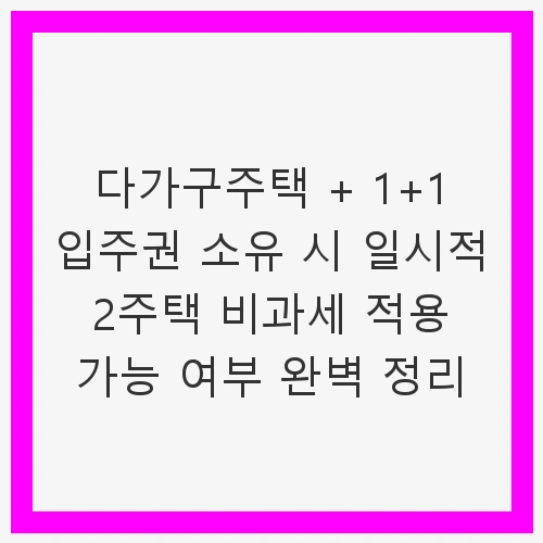 👉다가구주택 + 1+1 입주권 소유 시 일시적 2주택 비과세 적용 가능 여부 완벽 정리 알아보기