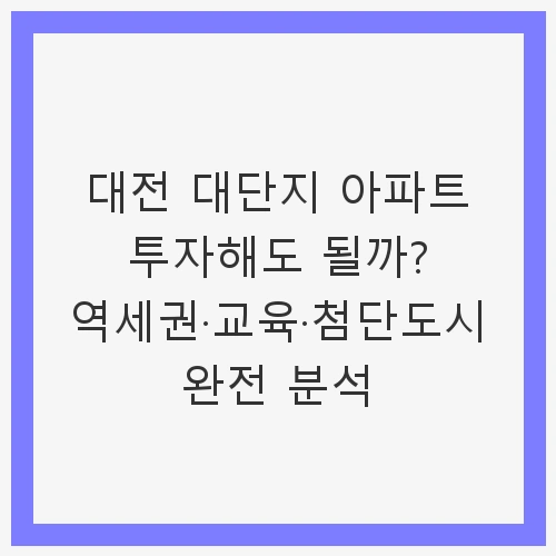 👉대전 대단지 아파트 투자해도 될까? 역세권·교육·첨단도시 완전 분석 확인하기