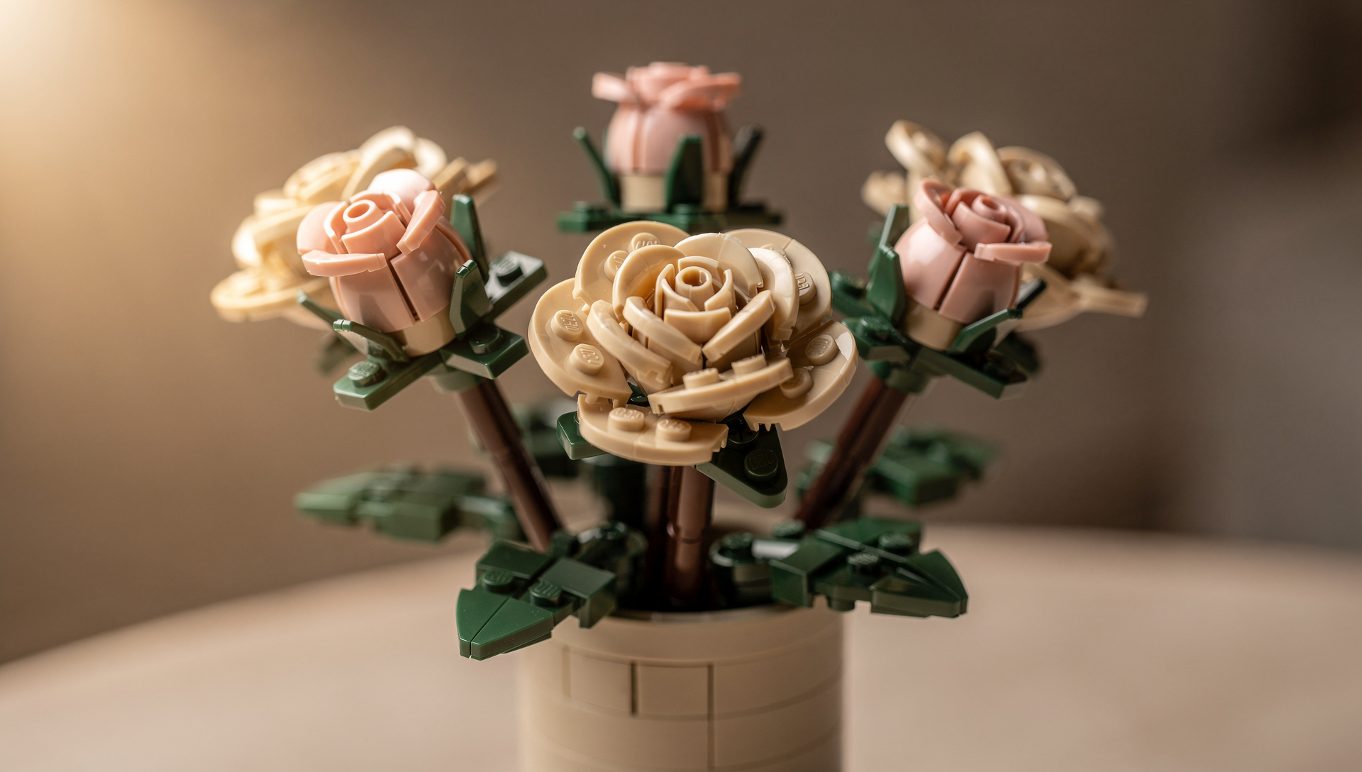여기에 안개꽃을 형상화한 작은 하얀 꽃들도 포함되어 있어서, 다 만들고 나면 정말 화원이나 꽃집에서 갓 사온 꽃다발 같은 느낌을 줍니다. 레고라고 해서 유치할 거라는 생각은 금물이에요. 성인 타겟의 '아이콘(Icons)' 라인업이라 인테리어 소품으로서의 퀄리티가 상당히 높습니다.