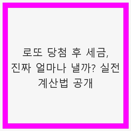 로또 당첨금은 그 자체로 큰 기쁨을 주지만, 실질적으로 손에 쥐는 금액은 세금으로 인해 줄어들게 됩니다. 이번 포스팅에서는 로또 당첨 후 세금 문제와, 실수령액을 계산하는 방법에 대해 상세히 알아보도록 하겠습니다. 이 글을 통해 로또 당첨 후 어떤 준비가 필요한지, 세금을 어떻게 계산할 수 있는지를 이해하게 될 것입니다.