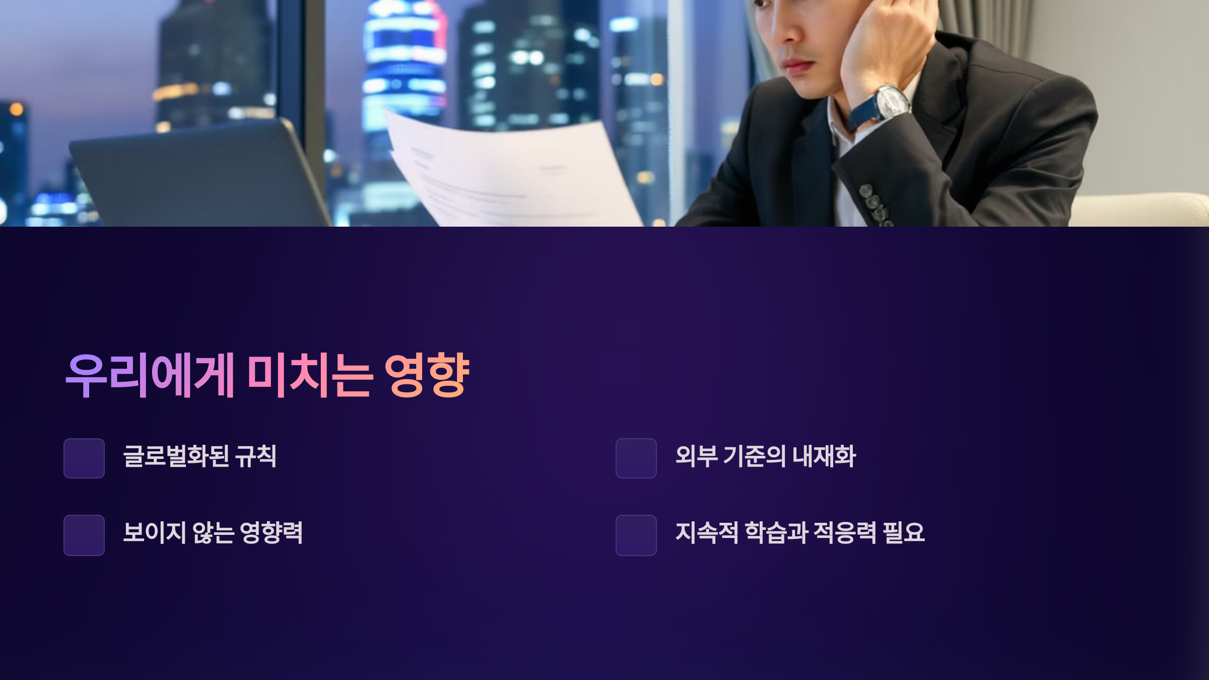 롭스앤그레이의 진출과 그 여파는 단순한 뉴스거리 이상의 함의를 갖습니다. 글로벌화된 규칙, 외부 기준의 내재화, 그리고 '보이지 않는 영향력'이 우리 사회 곳곳에 스며들고 있다는 뜻이니까요. 우리는 그저 '변화의 관찰자'에 머물 수 없습니다.