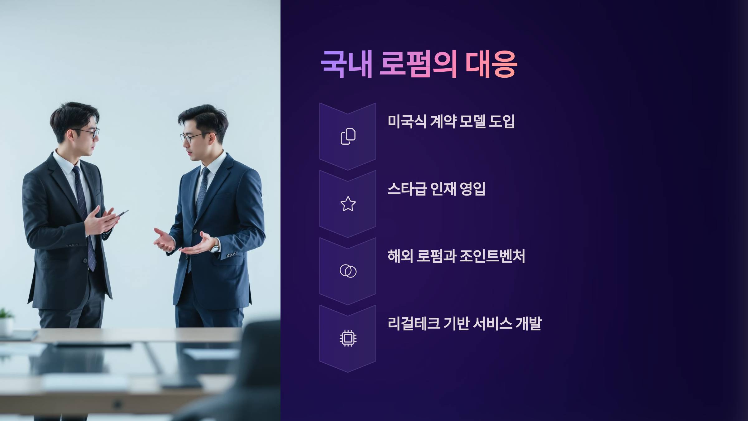 해외 로펌과 제휴하거나 리걸테크를 도입하는 등 능동적인 대응이 시작되고 있습니다.