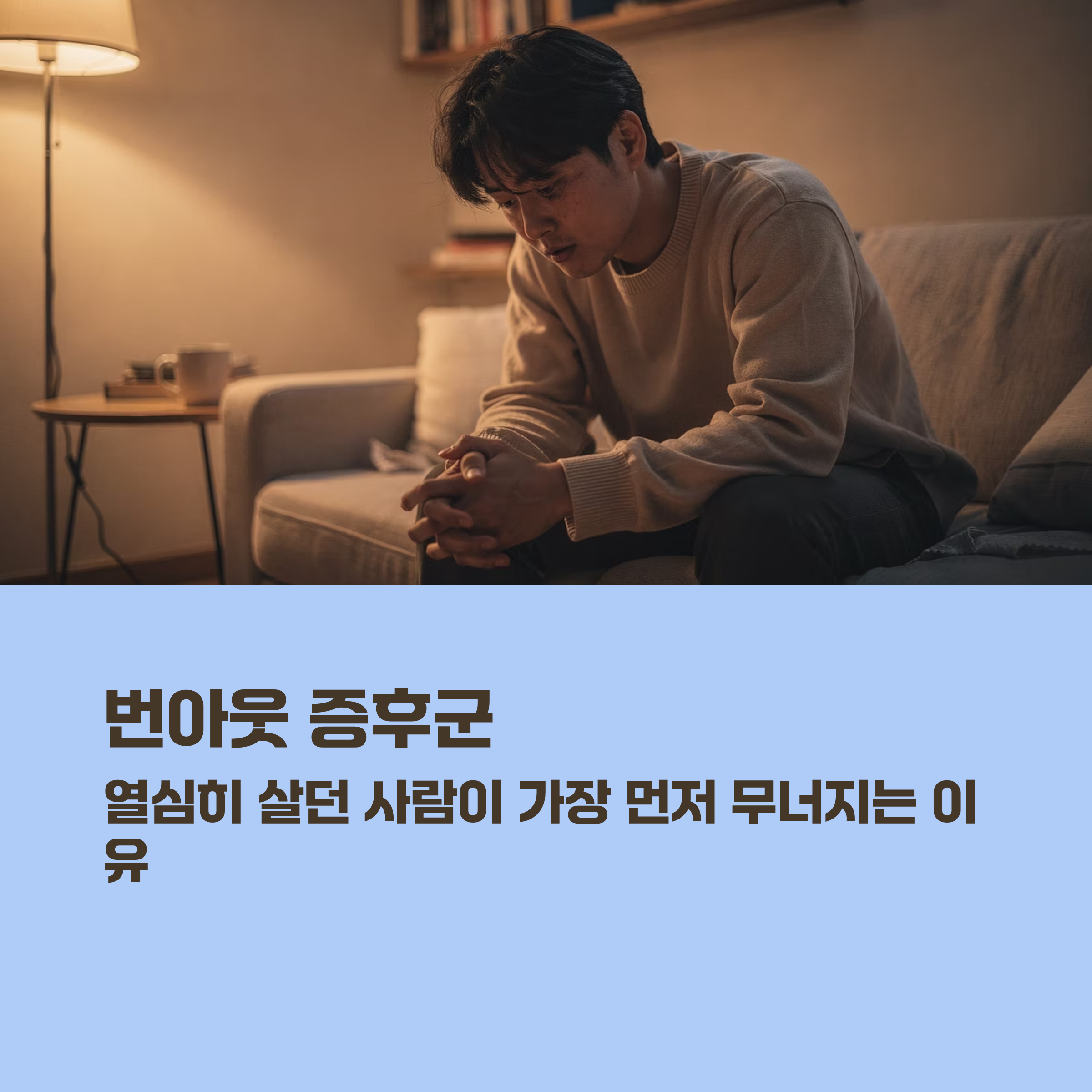 안녕하세요. 요즘 주변을 보면 "그냥 좀 지쳤어"라는 말을 정말 자주 듣게 돼요. 저도 한때는 그랬거든요. 해야 할 일은 쌓여 있는데 의욕은 바닥이고, 예전엔 성취감 느끼던 일들이 왜 이렇게 무의미하게 느껴지는지 모르겠고요. 처음엔 그냥 피곤해서 그렇다고 넘겼어요. 며칠 쉬면 괜찮아지겠지 싶었죠. 근데 이상하게 쉬어도 나아지질 않더라구요. 그때 알게 된 단어가 바로 '번아웃 증후군'이었어요. 오늘은 이 번아웃이 정확히 어떤 상태인지, 왜 성실한 사람들이 더 쉽게 겪는지, 그리고 이 신호를 어떻게 알아차리고 대응하면 좋을지 편하게 이야기해볼게요.