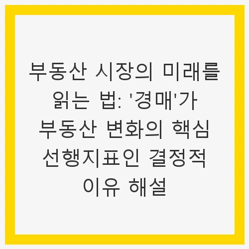 부동산 시장은 항상 변화의 연속선 위에 있습니다. 이러한 변화는 다양한 요인들에 의해 영향을 받지만, 그 중에서도 '경매'는 부동산 시장의 미래를 읽는 중요한 키워드로 자리 잡고 있습니다. 경매는 단순히 물건을 팔기 위한 방식이 아니라, 시장의 향후 방향성을 가늠할 수 있는 신호탄 역할을 합니다. 이 블로그 글에서는 경매가 부동산 변화의 핵심 선행지표가 되는 이유를 여러 측면에서 분석해 보겠습니다.