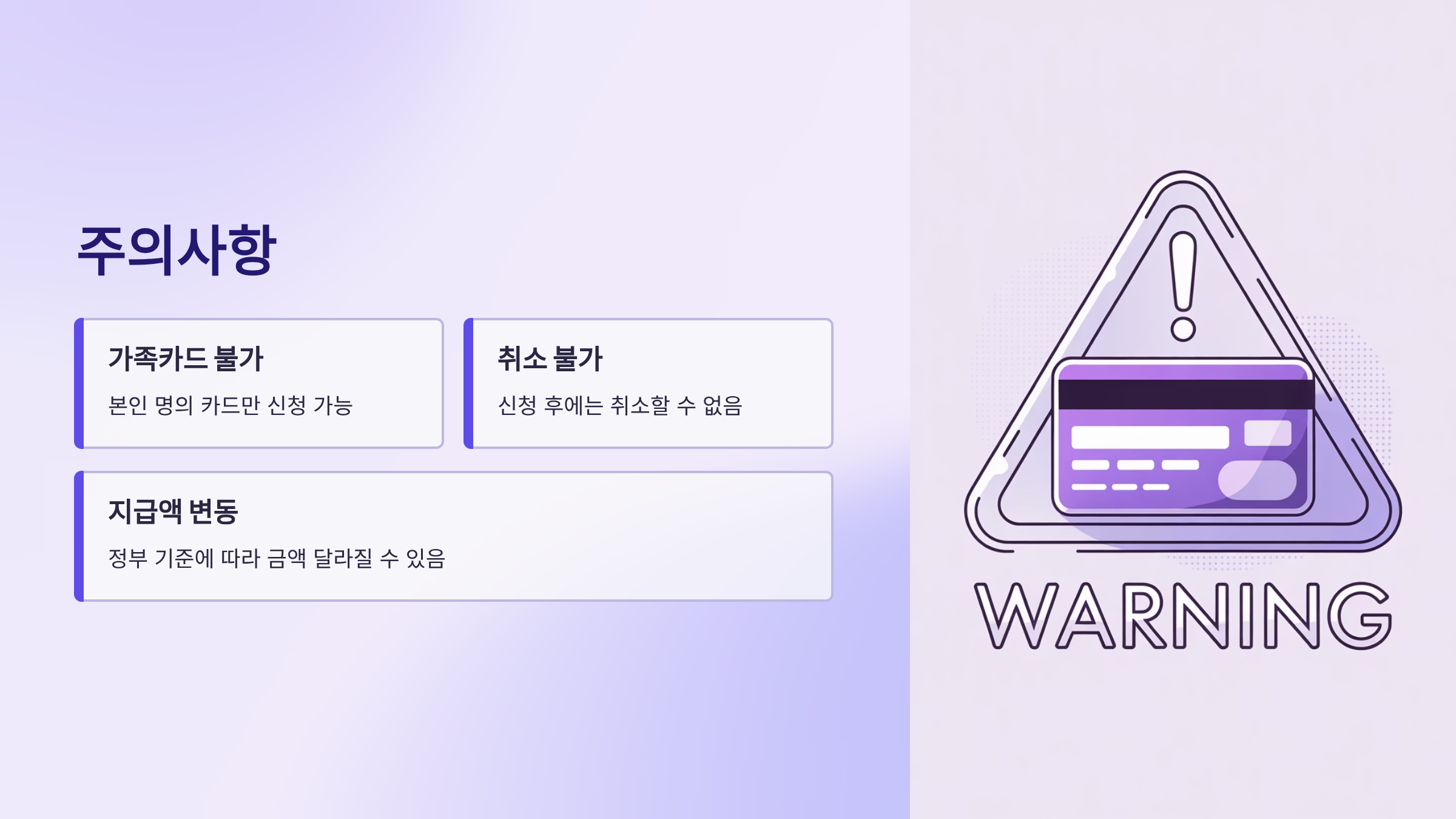 - 가족카드로는 신청 불가
