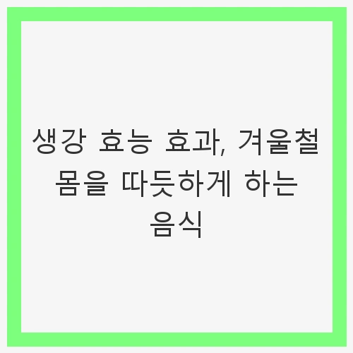 겨울철 건강을 위해 생강을 적극적으로 활용해 보세요. 생강은 몸을 따뜻하게 하고 면역력을 높여주는 효과가 뛰어난 식품으로, 다양한 요리와 음료에 활용할 수 있습니다. 건강한 겨울을 보내기 위해 생강을 식단에 포함시키는 것은 매우 좋은 선택이 될 것입니다.