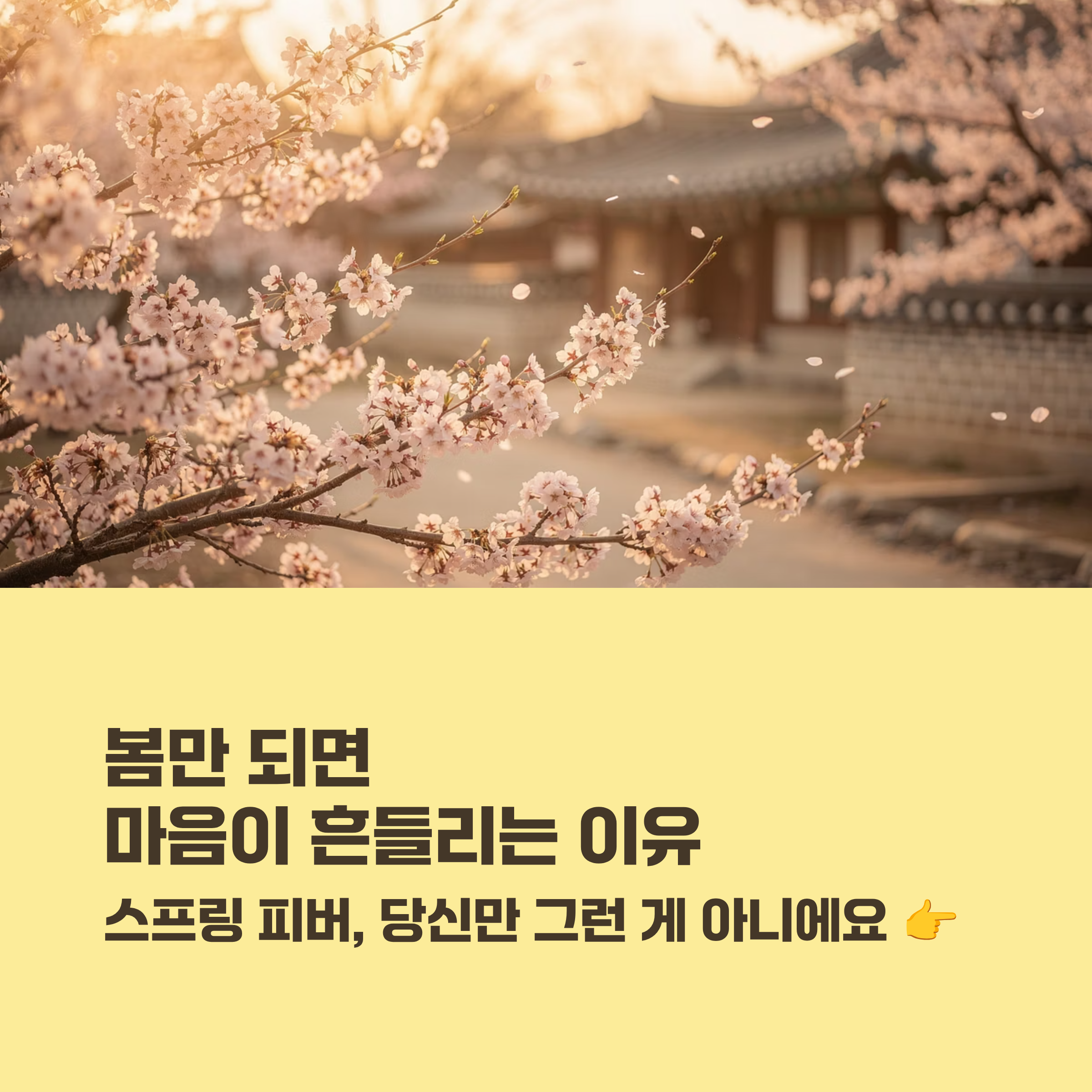재미있는 건 이 현상이 동서양을 가리지 않고 나타난다는 거예요. 우리나라에서도 예로부터 '봄을 탄다'라는 표현이 있잖아요. 결국 같은 현상을 다르게 부르는 것뿐이죠. 봄이 되면 자연스럽게 몸과 마음이 반응하는 건 인간이라면 누구나 경험하는 보편적인 현상입니다. 그러니까 요즘 괜히 마음이 싱숭생숭하다면, 그건 지극히 정상적인 봄의 신호라고 생각하시면 돼요.