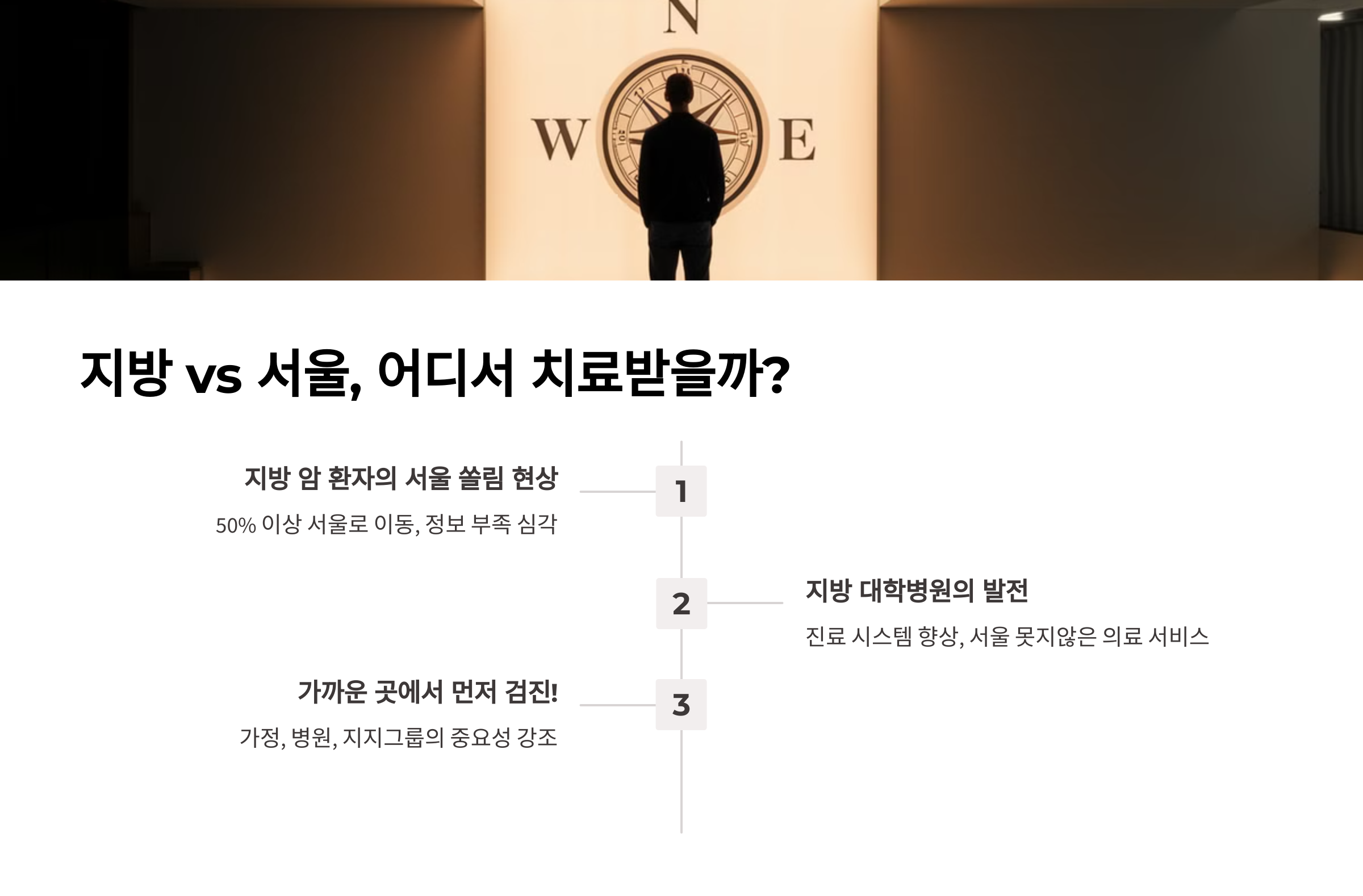 제가 들은 바로는 지방에서 암선고를 받은 사람들 50% 이상이 서울로 간다고 합니다.