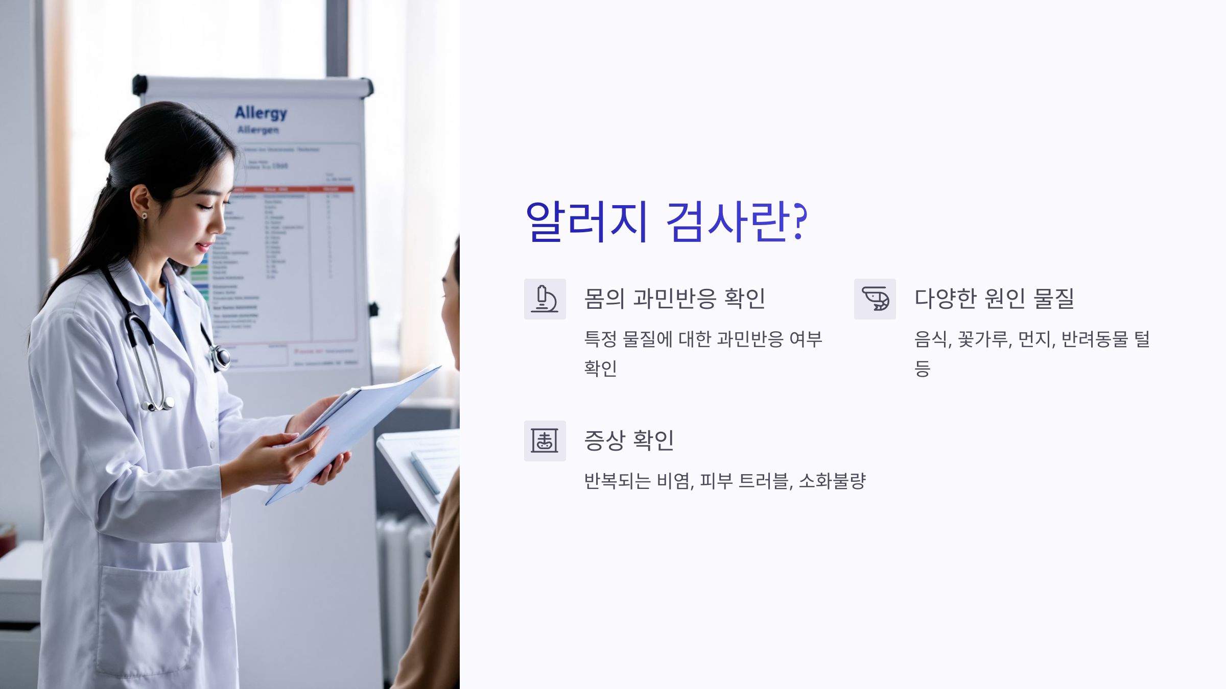 안녕하세요 여러분 :) 오늘은 조금 현실적인 이야기를 해보려고 해요. 다들 한 번쯤은 갑자기 피부가 뒤집히거나 눈이 간질간질해서 '이거 알레르기인가?' 싶었던 적 있으시죠? 저도 그랬거든요. 어느 날은 친구랑 놀다가 갑자기 팔에 두드러기가 생기더니만 다음날까지 붉은 자국이 남아 있더라고요. 병원에 갔더니 의사쌤이 "알러지 검사 한번 받아보자"는 거예요. 근데... 병원마다 검사도 다르고, 가격도 천차만별인 거 있죠? 그래서 이번엔 '알러지 검사'에 대해, 도대체 어디서, 얼마에, 어떻게 받는 게 좋은지, 저만 알고 있기 아까운 꿀팁까지 모두 담아볼게요!