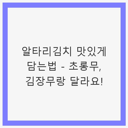 이번 포스팅을 통해 알타리김치의 매력에 빠져보셨기를 바랍니다. 초롱무로 맛있게 담는 법을 익혀, 여러분만의 특별한 알타리김치를 만들어 보세요. 가족과 함께 나누고, 친구들과 즐기는 소중한 시간이 될 것입니다. 한국의 맛, 알타리김치로 행복한 식사 시간을 가져보세요!