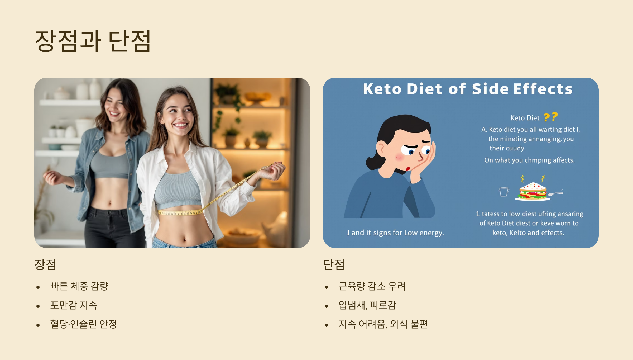 | 체중 감량 | 빠른 체중 감량 효과 | 근육량 감소 우려 |