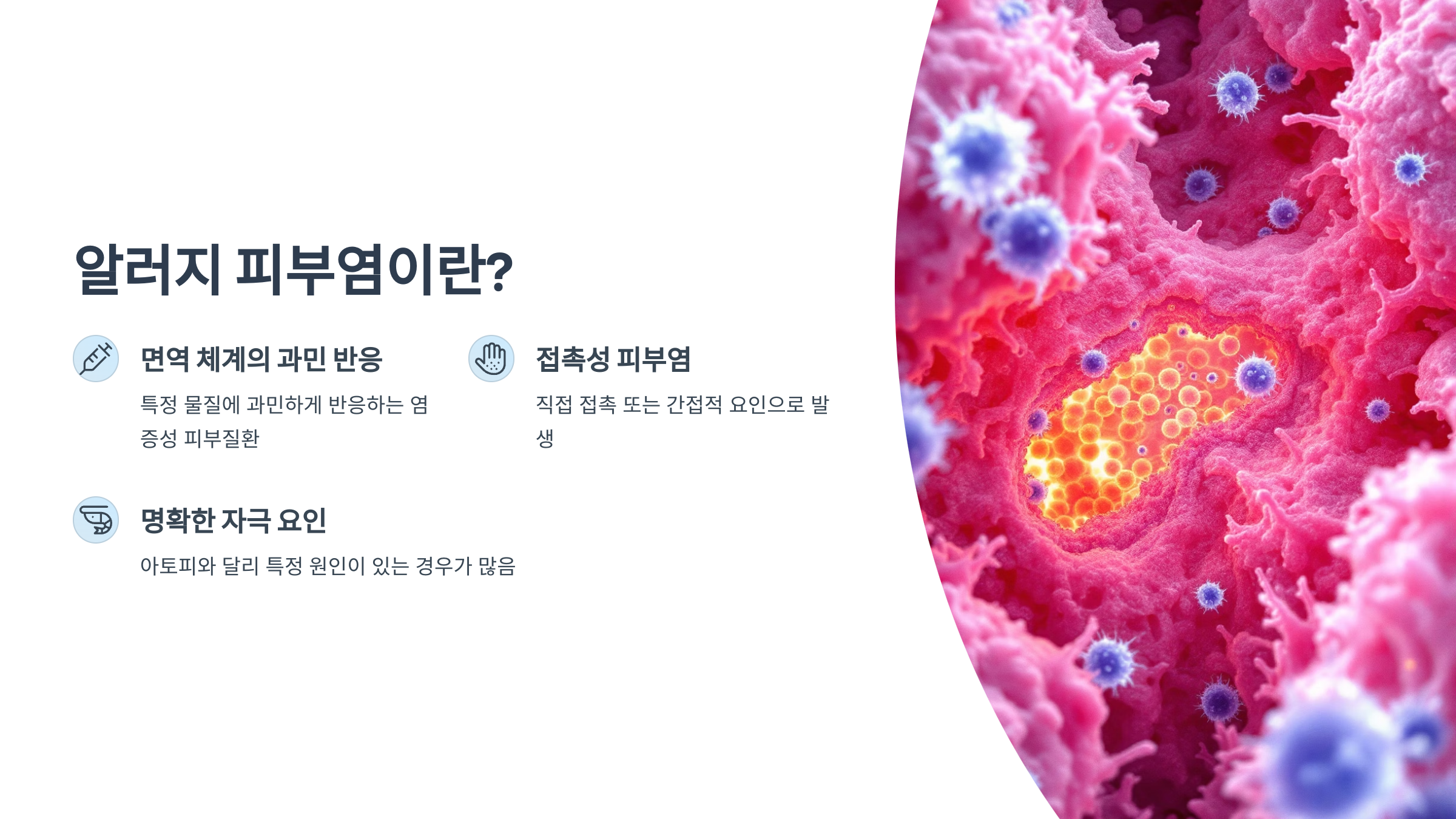 알러지 피부염은 우리 면역 체계가 특정 물질에 과민하게 반응하면서 생기는 염증성 피부질환이에요. '접촉성 피부염'이라고도 불리며, 접촉한 물질이 원인인 경우도 있고, 음식이나 공기 중 성분처럼 간접적인 요인도 많아요. 특히 아토피성 피부염과 혼동되기도 하지만, 알러지 피부염은 명확한 자극 요인이 있는 경우가 많죠.