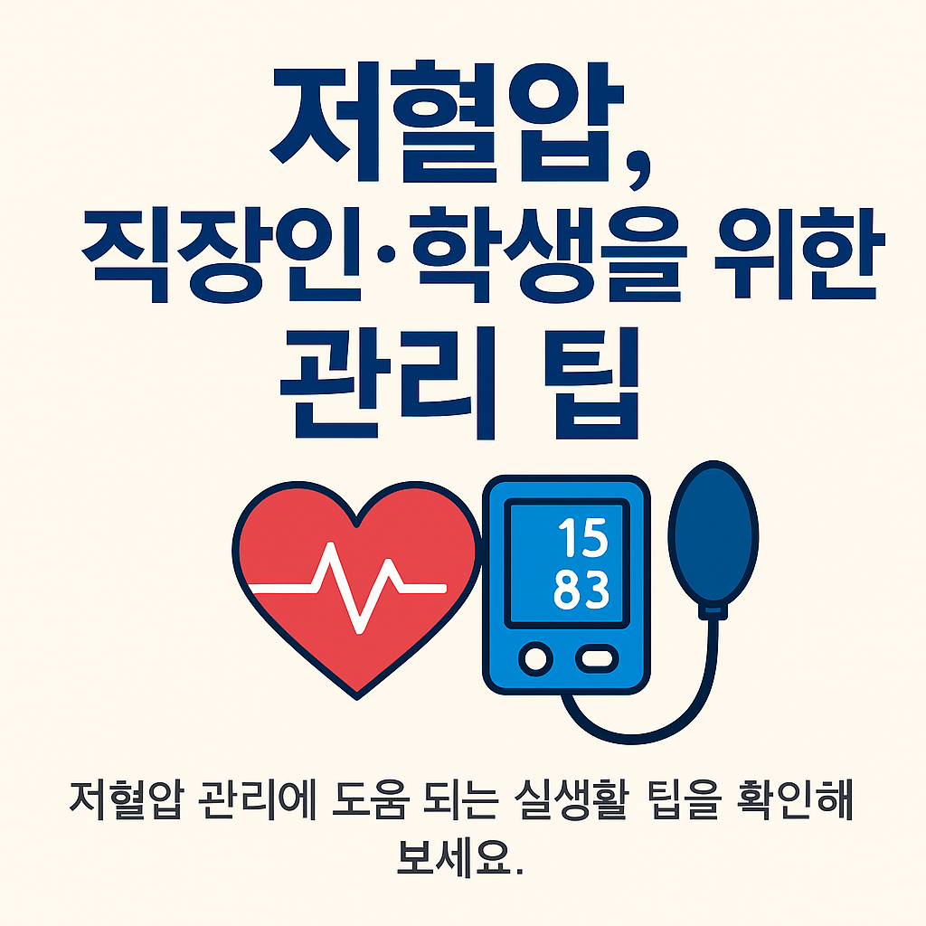 저혈압은 피로, 어지럼증, 집중력 저하를 유발할 수 있어 바쁜 일상을 보내는 직장인과 학생에게 특히 불편한 증상입니다. 하지만 몇 가지 생활 습관을 개선하면 저혈압으로 인한 불편함을 줄일 수 있습니다. 오늘은 실생활에서 바로 적용할 수 있는 저혈압 관리 팁을 소개합니다.