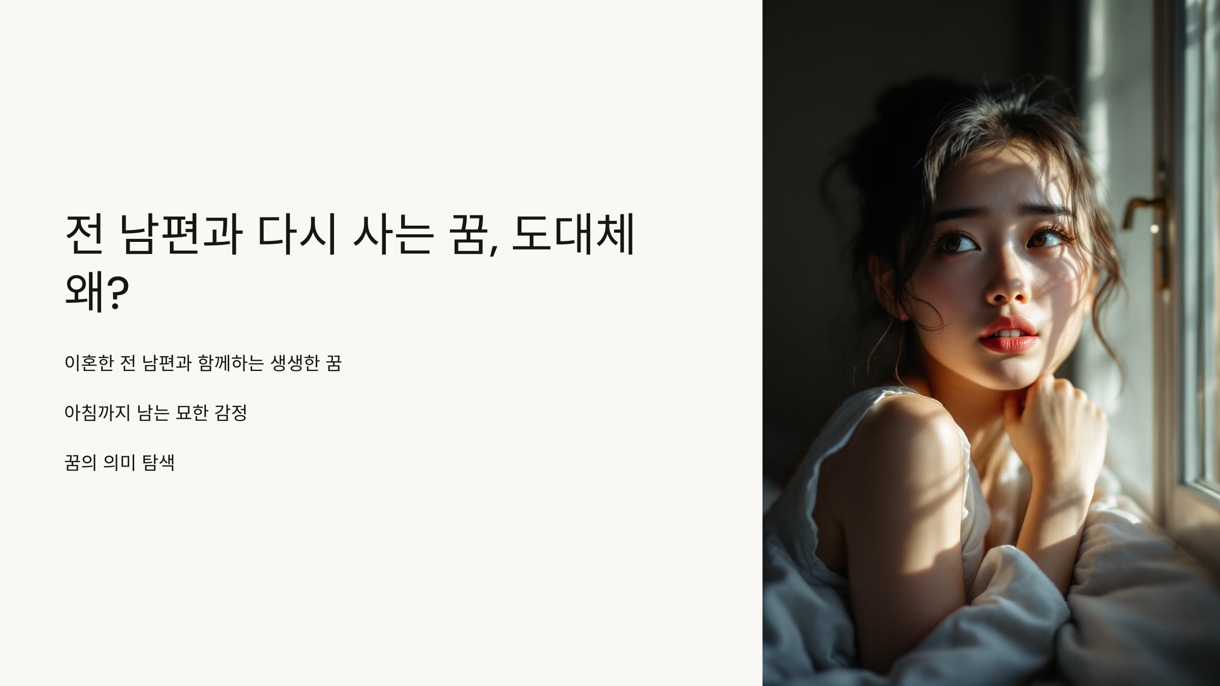 이혼까지 했는데, 왜 또 그 사람과 함께 있는 꿈을 꾸는 걸까요? 단순한 기억일까요, 무의식의 신호일까요?