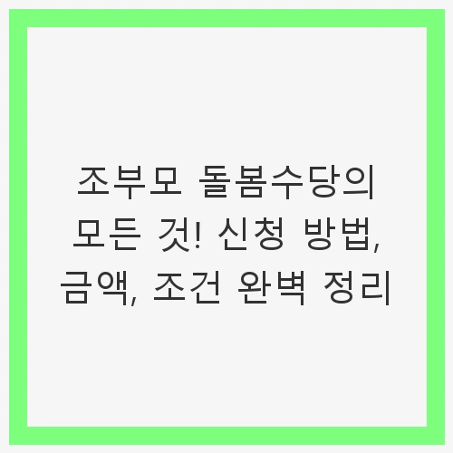 👉조부모 돌봄수당의 모든 것! 신청 방법, 금액, 조건 완벽 정리 알아보기