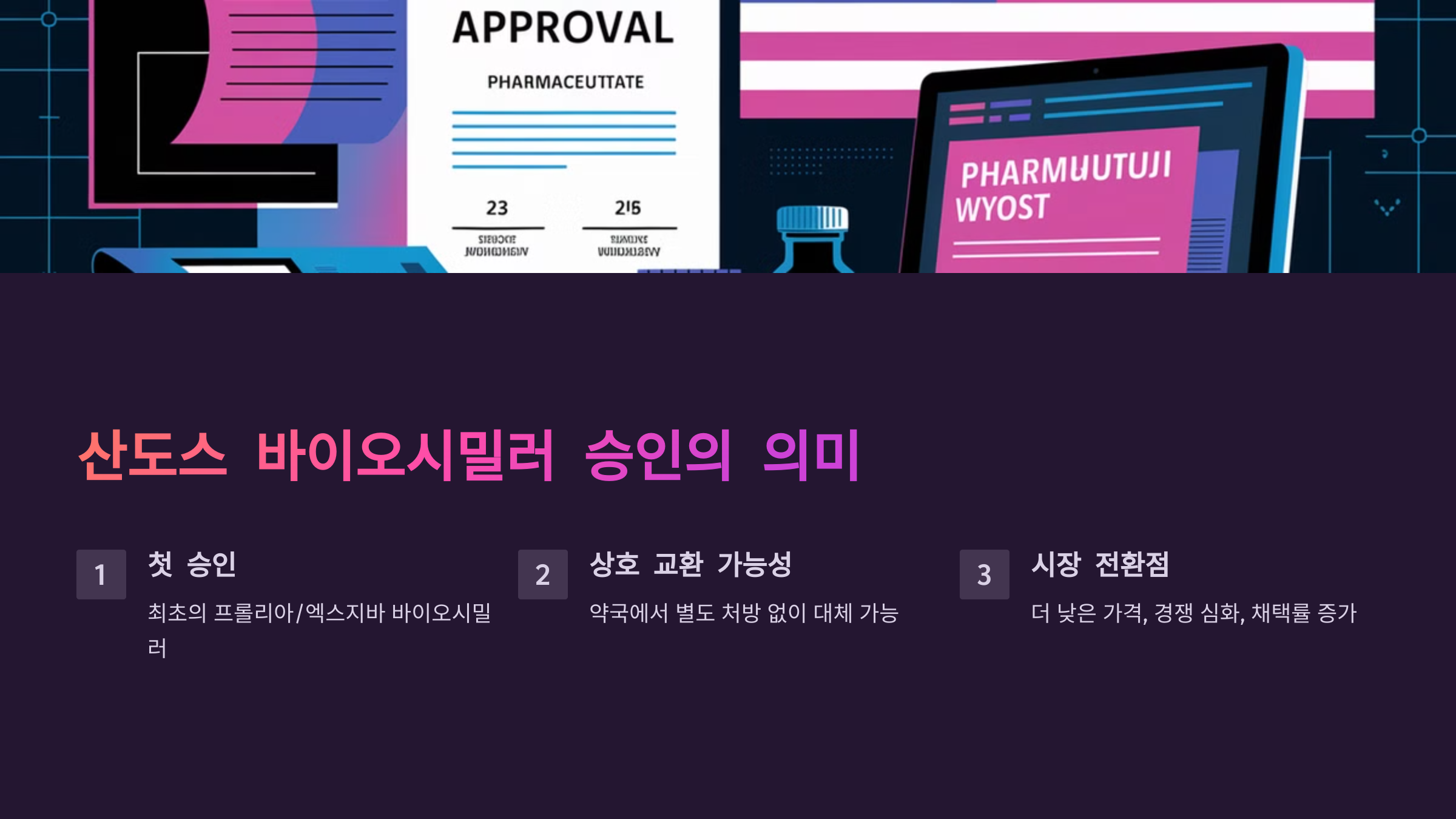 이러한 승인은 바이오시밀러 시장에서 중요한 전환점을 의미합니다. 기존에는 바이오시밀러가 출시되더라도 처방 의사가 오리지널 제품을 선호하는 경향이 강했지만, 상호 교환 가능성이 인정된 제품은 약국에서 별도 처방 없이 대체할 수 있어 보다 빠르게 시장에 확산될 가능성이 큽니다.