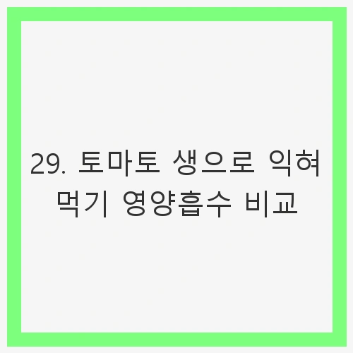 토마토는 비타민 C, 비타민 A, 그리고 다양한 항산화 물질이 풍부하여 건강에 많은 이점을 제공합니다. 그러나 조리 방법에 따라 이러한 영양소가 어떻게 변화하는지, 그리고 각 방법의 장단점은 무엇인지에 대한 정보가 많지 않습니다. 우리는 생으로 먹을 때와 익혀 먹을 때 각각의 영양소 흡수율을 비교하고, 이를 통해 보다 건강한 식습관을 형성할 수 있는 방법을 모색해 보겠습니다.