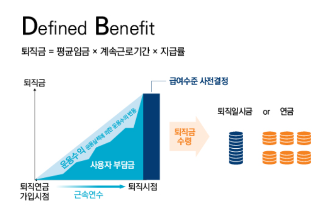 | 퇴직금 계산 | 퇴직 전 3개월 평균임금 × 근속연수 | 매년 연봉의 1/12 + 운용수익 |