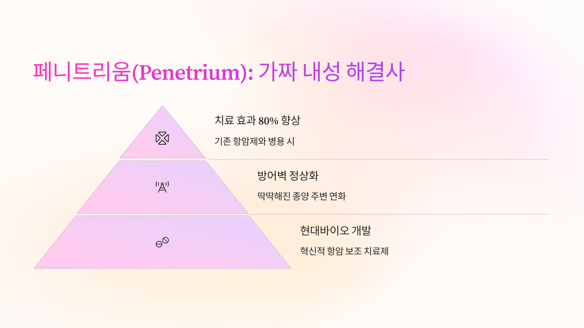 한국 바이오 기업들도 이 흐름에 발맞춰 주목할 만한 성과를 내고 있습니다. 페니트리움이라는 물질이 딱딱해진 ECM을 부드럽게 만들어주면서, 항암제가 종양 내부까지 침투할 수 있도록 돕는 역할을 하죠. 전임상 결과에 따르면 항암제와 병용 투약 시 치료 효과가 최대 80%까지 상승한다고 하니, 정말 놀라운 결과 아닐까요?