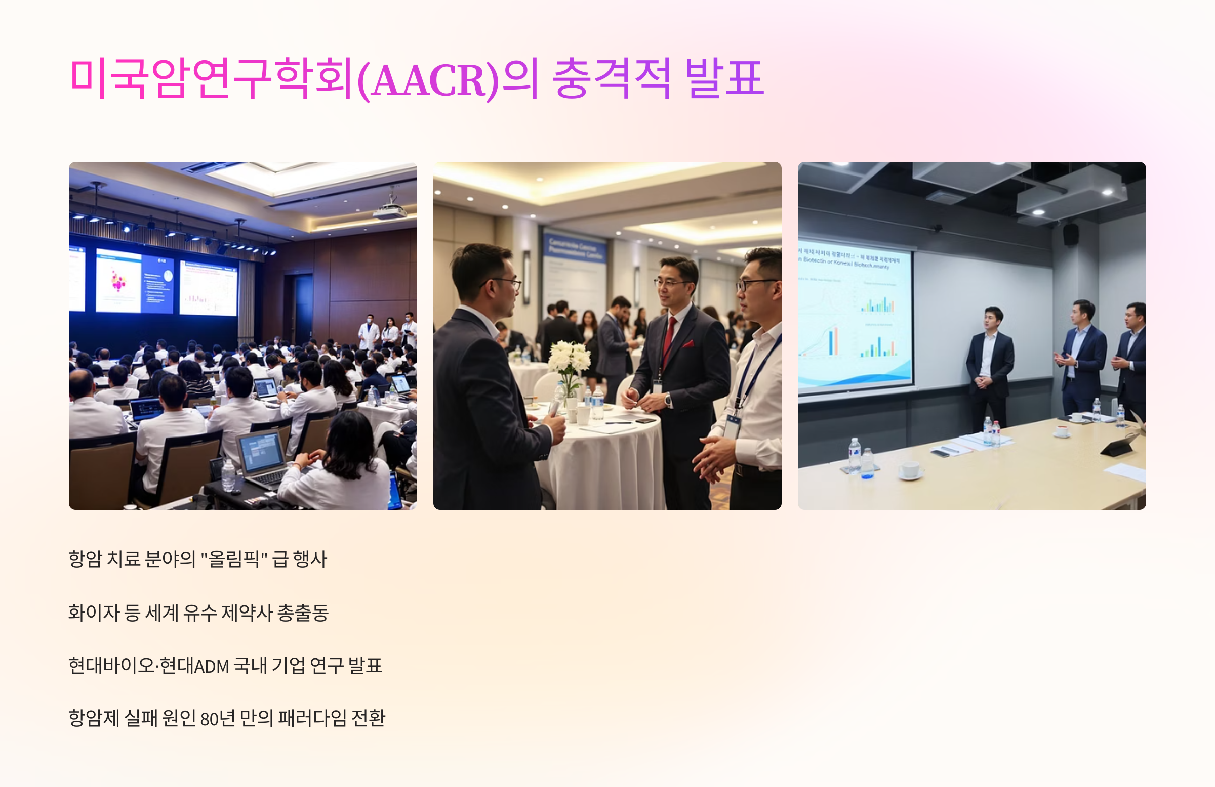 항암 치료 분야의 올림픽이라 불리는 AACR(미국암연구학회)이 올해도 화려하게 열렸습니다. 화이자 등 글로벌 제약사들이 총출동한 이 학회에서는 정말 놀라운 연구 결과가 발표되었는데요. 많은 항암제 치료가 실패하는 이유가 단순한 약물 내성 때문이 아니라, ‘가짜 내성’ 때문이라는 사실이죠. 이제까지 우리가 몰랐던 암 치료의 숨겨진 장애물이 드러난 셈입니다.