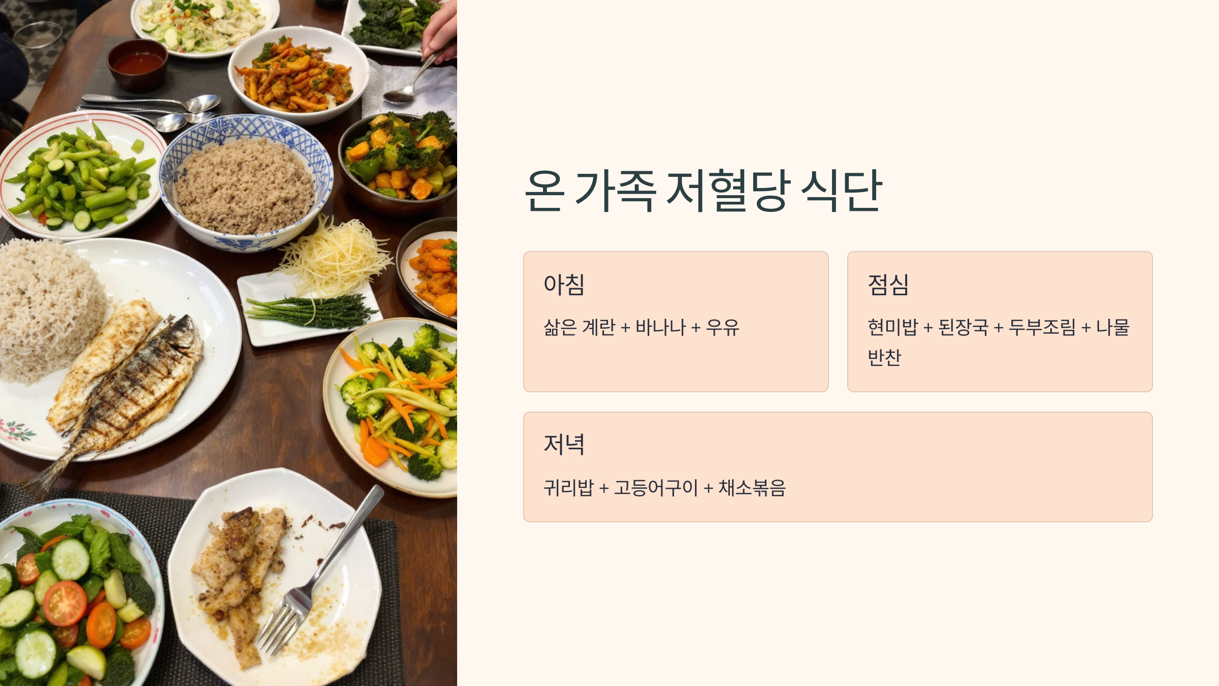 ‘나만 따로 먹기’는 어렵잖아요. 온 가족이 함께 즐길 수 있는 저혈당 식단은 의외로 간단합니다. 정제된 탄수화물을 줄이고, 자연식 위주로 바꾸는 것이 핵심이에요. 특히 자녀들이 있는 집이라면 입맛까지 고려한 구성법이 필요하죠.