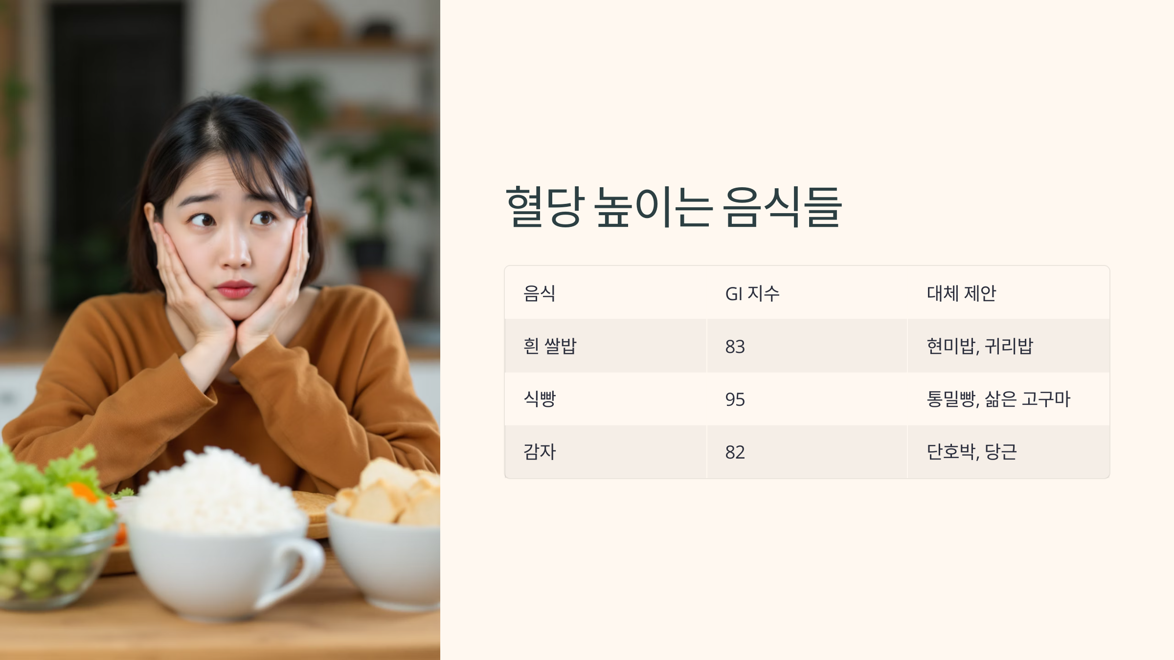 | 음식 | GI 지수 | 대체 제안 |