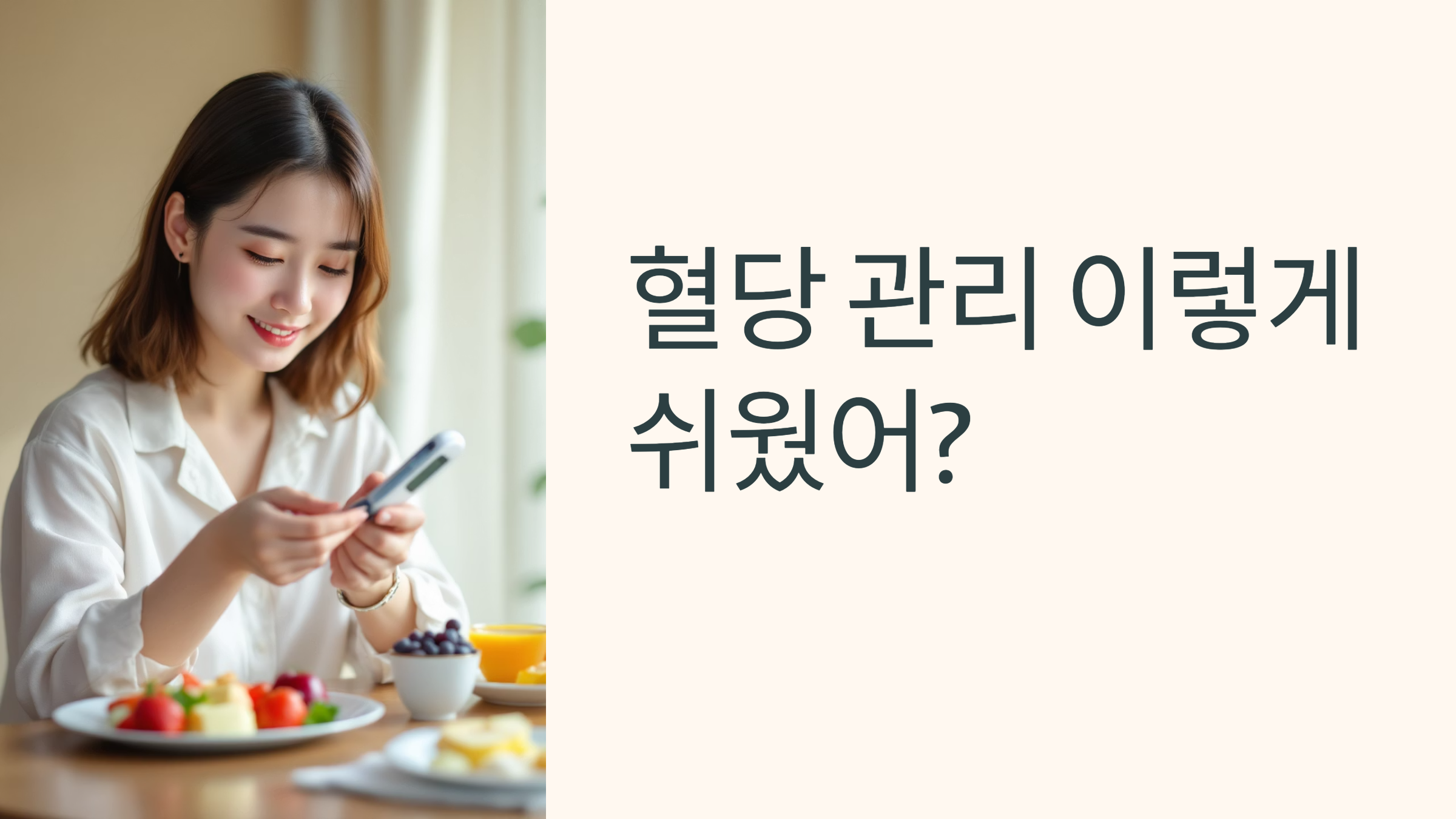 혈당 관리, 어렵게만 느껴지셨나요? 사실 우리 식탁과 습관만 조금 바꿔도 결과는 확연히 달라집니다. 당뇨 전단계는 되돌릴 수 있는 '기회'입니다. 무섭다고 피할 게 아니라, 지금부터 매일 하나씩 실천해보세요. 저도 엄마와 함께 시작했더니, 건강뿐 아니라 식탁이 훨씬 더 다채로워졌답니다. 소중한 내 몸, 그리고 가족 건강을 지키는 가장 쉬운 방법, 오늘 바로 실천해보세요. 우리 함께 해봐요!