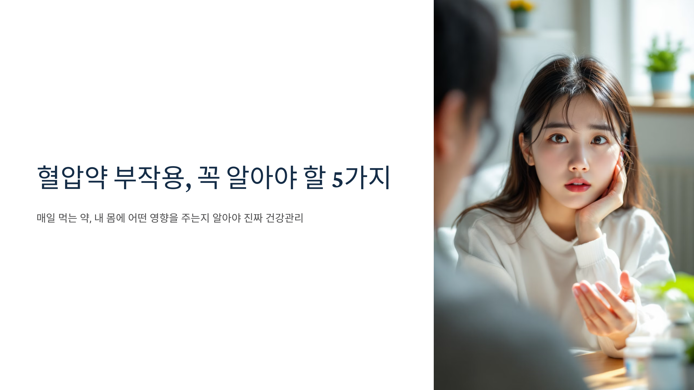 매일 먹는 그 알약, 과연 내 몸에 어떤 영향을 주고 있을까요? 혈압약, 부작용까지 제대로 알고 있어야 진짜 건강관리입니다.