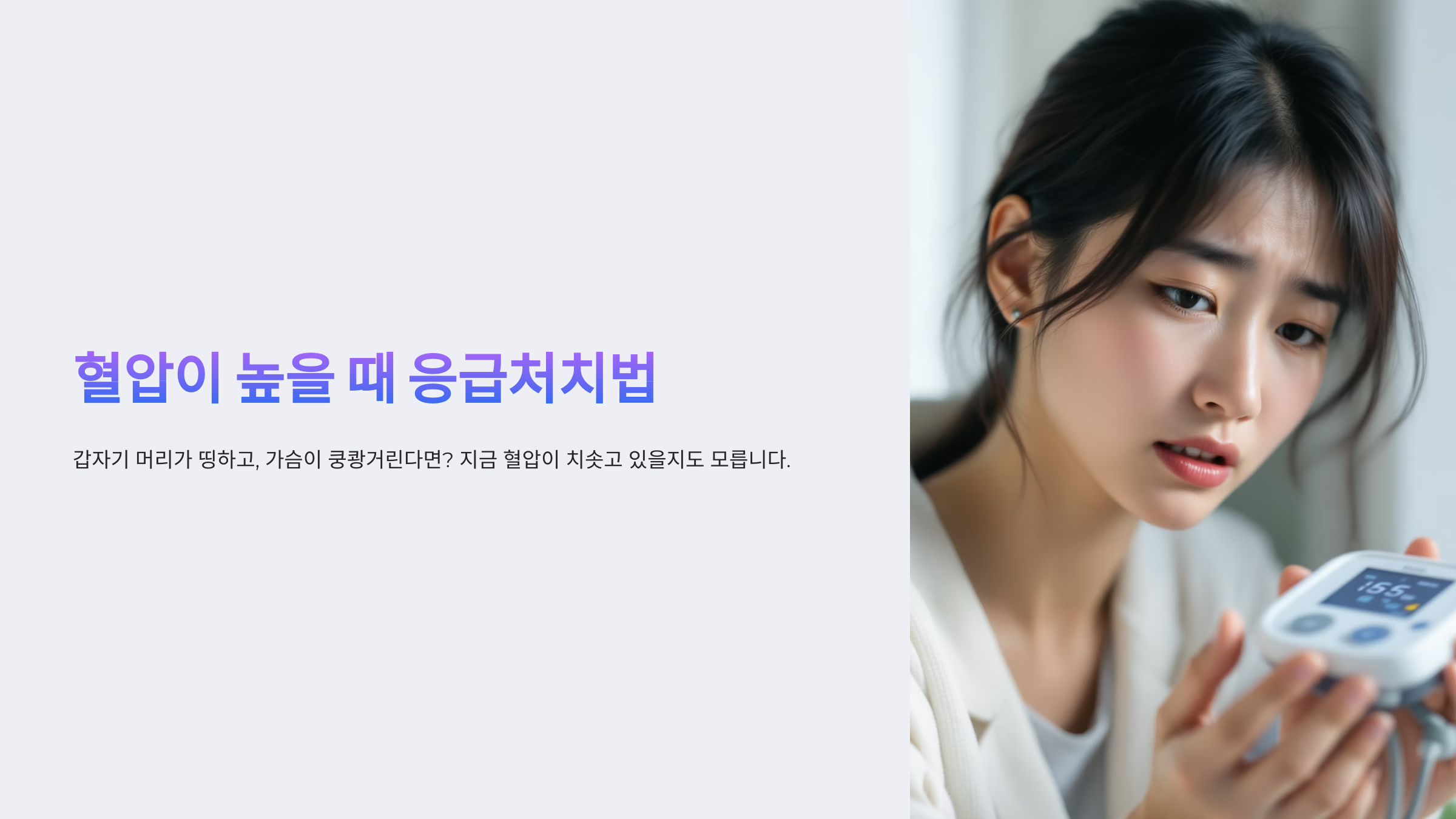 갑자기 머리가 띵하고, 가슴이 쿵쾅거린다면? 지금 이 순간, 혈압이 치솟고 있을지도 모릅니다.