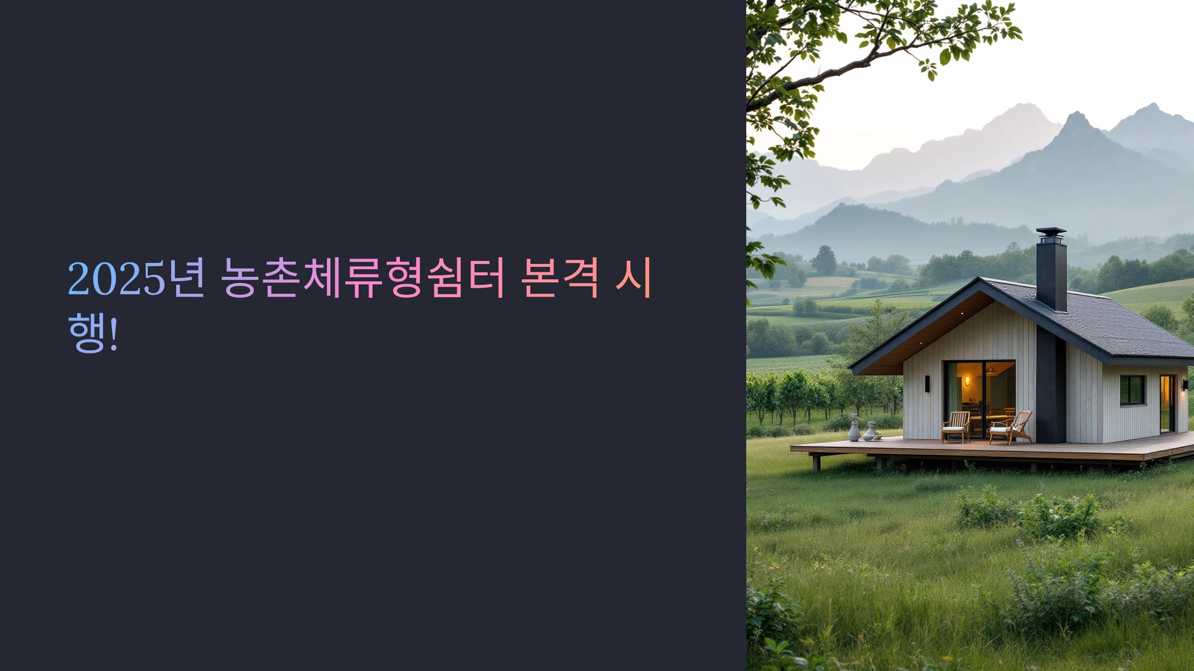 안녕하세요, 요즘 시골집 리모델링에 꽂혀 있는 도시 거주자입니다. 사실 저도 한동안 주말마다 시골 나들이를 다니며 ‘쉼터 하나 있었으면…’ 하고 꿈꿔왔거든요. 그런데 최근에 엄청난 뉴스가 있더라고요! 바로 2025년부터 시행되는 농촌체류형쉼터 제도입니다. 9가지 조건을 충족하면 합법적으로 시골에 작은 쉼터를 설치할 수 있게 됐다니, 안 알아볼 수가 없죠. 오늘은 이 제도에 대해 꼼꼼히 정리해봤어요. 함께 보시죠!