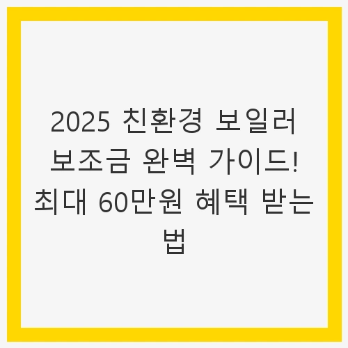 👉2025 친환경 보일러 보조금 완벽 가이드! 최대 60만원 혜택 받는 법 알아보기