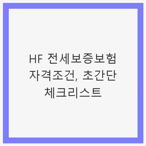 👉HF 전세보증보험 자격조건, 초간단 체크리스트 바로가기